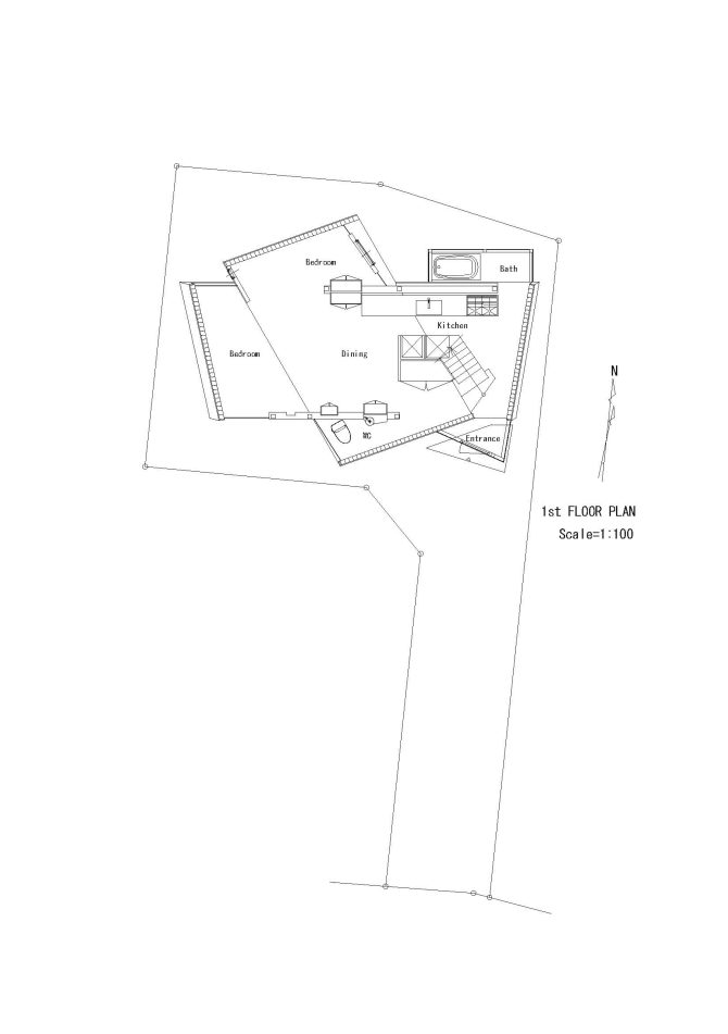 この敷地の周辺は緑で囲まれているように見えますが、隣地建物との距離も近く、郊外でありながら、視線をいかにコントロールするかが重要なポイントです。(旗竿地でもある)クライアントからの要望は「機能性や面積の確保よりも面白い空間であることが一番」という事でした。