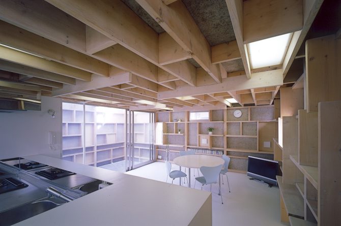 ここでのコンセプトは電車の騒音を防ぎつつ広い空間を確保すること。さらに、その外壁に空気層を設け、夏は自然の風を通し、冬は暖房による温かい空気の通り道を確保しようと試みました。それと同時にツーバイ材によるパネル化を工場で行い、工期短縮、工事費削減も目指しました。