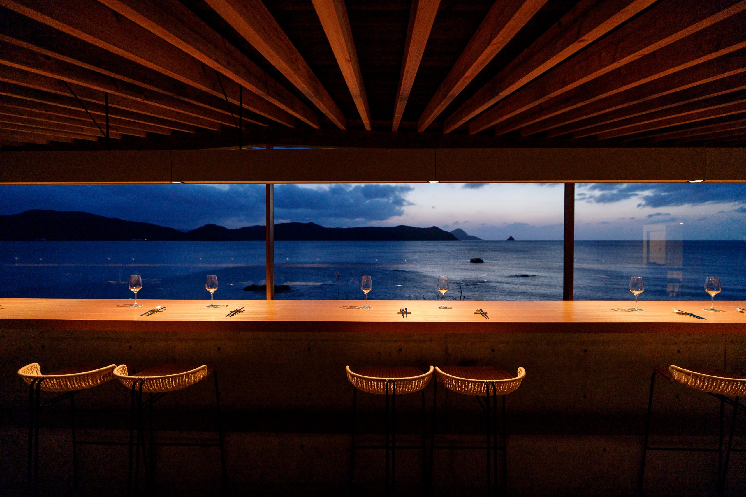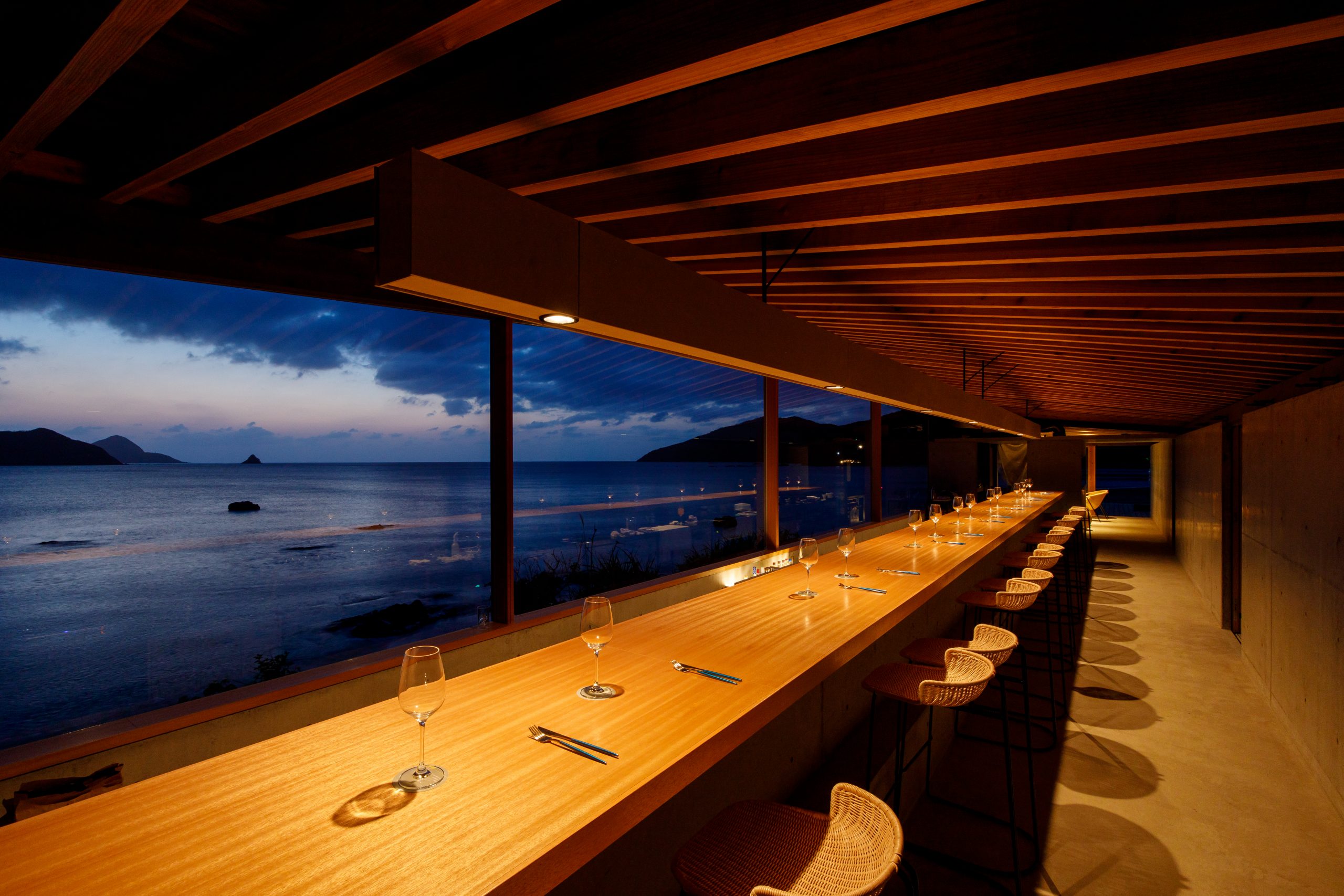 海にひらけた開放的な窓が特徴のレストラン&バーは、波音を聴きながら、奄美の力強い食材を活かした創作料理が楽しめる空間です。静かな入江にひっそりと佇む空間で、刻々と表情を変える海の景色を眺めながら、心地よい豊かな時間を過ごせるようにデザインされています。