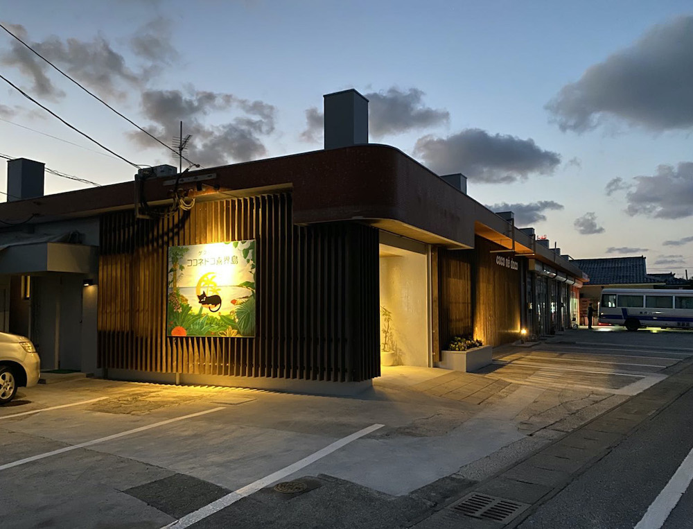 芸術大学の若い学生が田中一村に対するオマージュとしてデザインした図柄を、同じビルに作業場を構えるベテランの看板職人に手書きで再現してもらい、新旧の力を合わせて看板を制作した。
